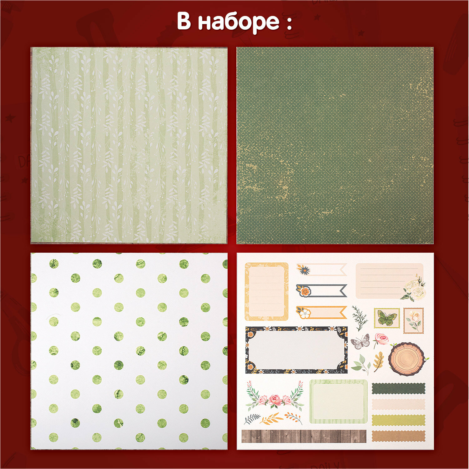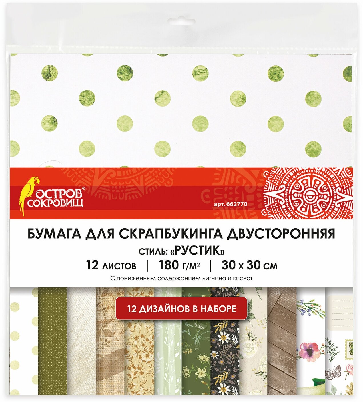 Бумага для скрапбукинга, для открыток, творчества, декора 30х30 см Рустик, двусторонняя, 12 листов, 12 дизайнов, 180 г/м2, Остров Сокровищ, 662770 интересное: