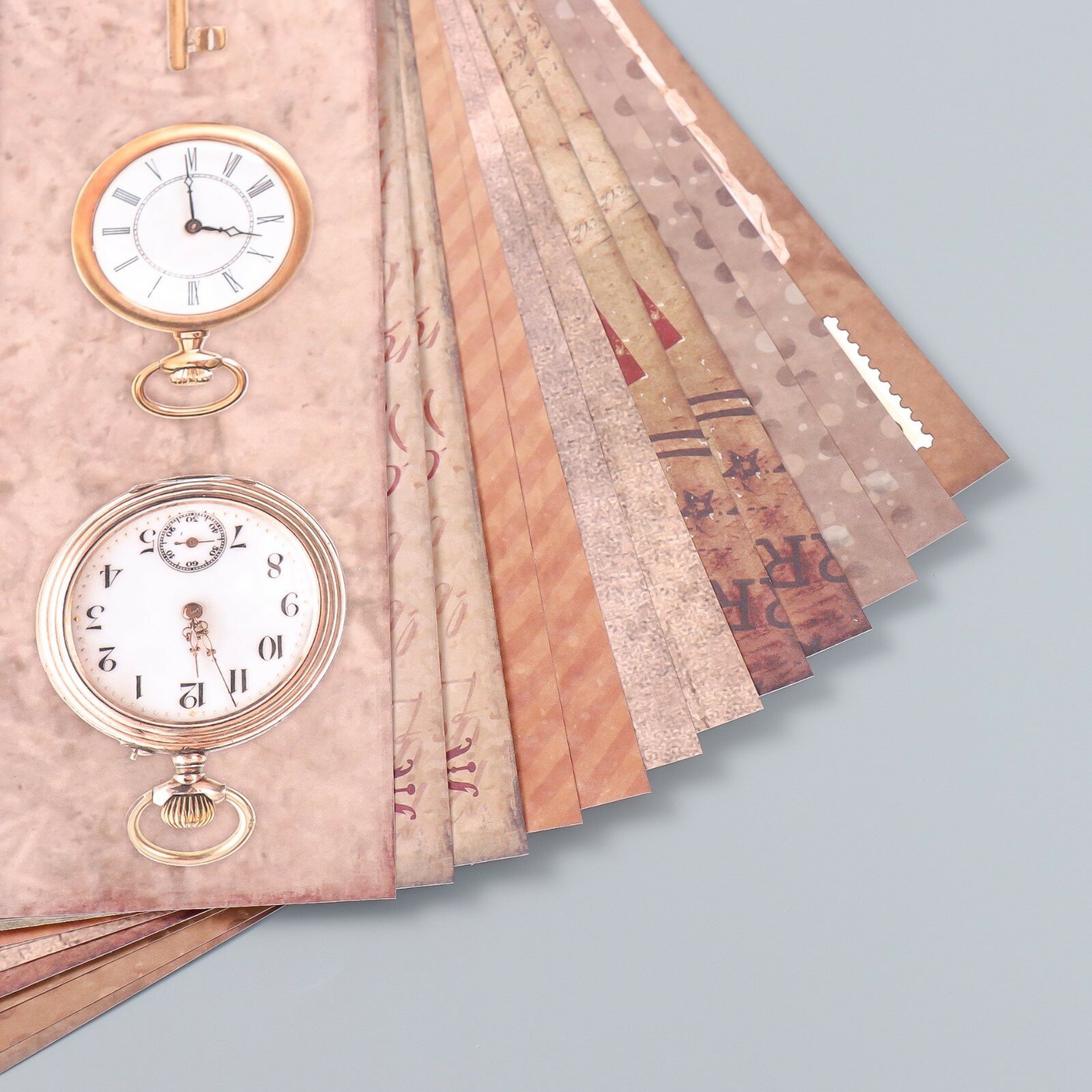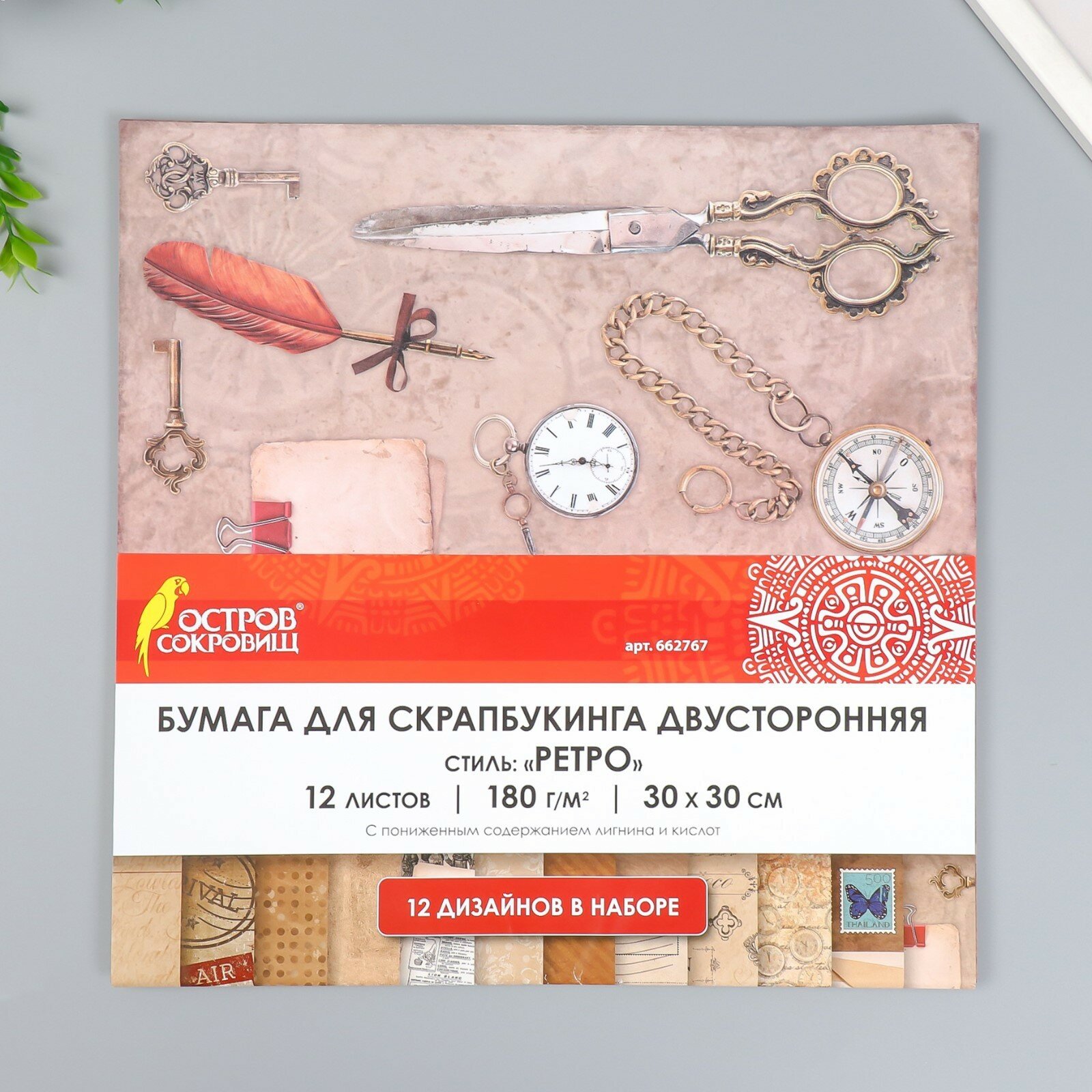 Бумага для скрапбукинга, для открыток, творчества, декора 30х30 см Ретро, двусторонняя, 12 листов, 12 дизайнов, 180 г/м2, Остров Сокровищ, 662767