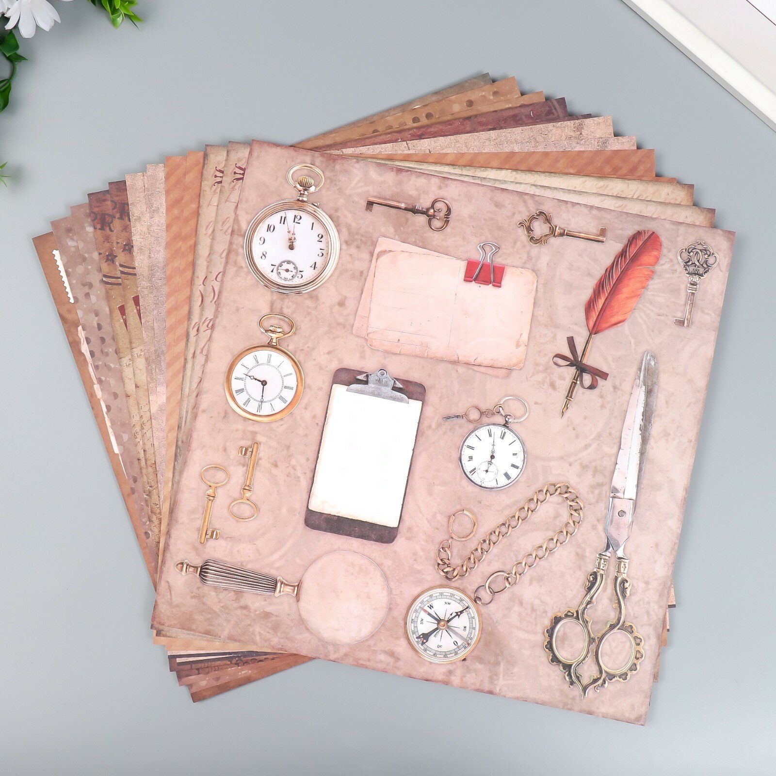 Бумага для скрапбукинга 30х30 см "Ретро", двусторонняя, 12 листов, 12 дизайнов, 180 г/м2 интересное: