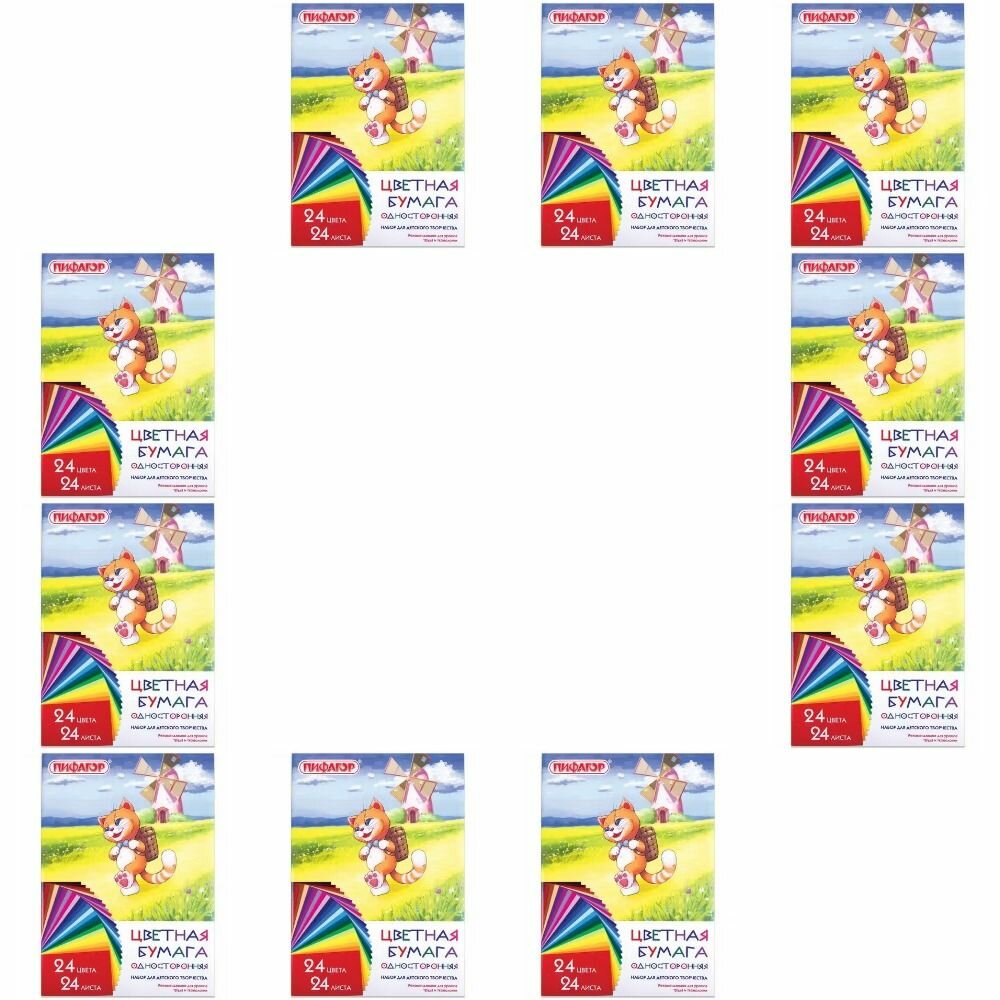 Цветная бумага пифагор, для творчества, односторонняя, формат А4, 24 цвета, 24 листа, 5 штук