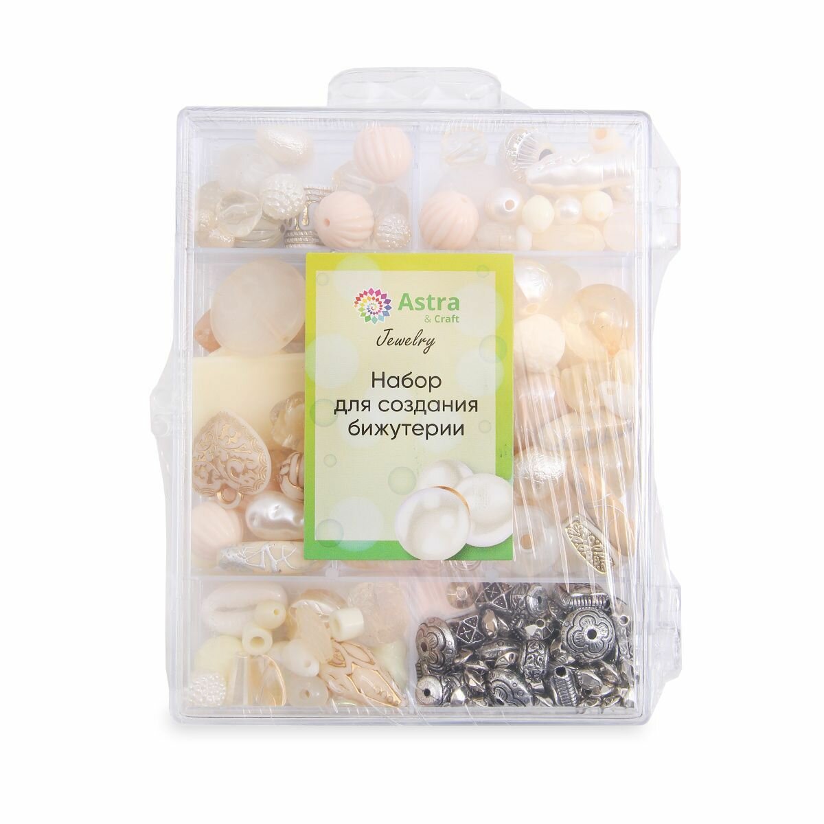 Набор для создания бижутерии Astra&Craft Бежевые и серебристые бусины, фурнитура, 66993a