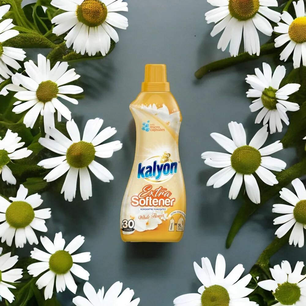 Концентрированный кондиционер ополаскиватель для белья KALYON EXTRA CONCENTRATED SOFTENER Белый Цветок 750 мл