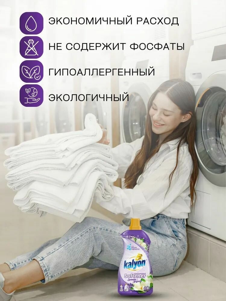 Кондиционер для белья Kalyon средство для стирки концентрированный, гипоаллергенный приятный аромат лаванда и магнолия 0.75 литра