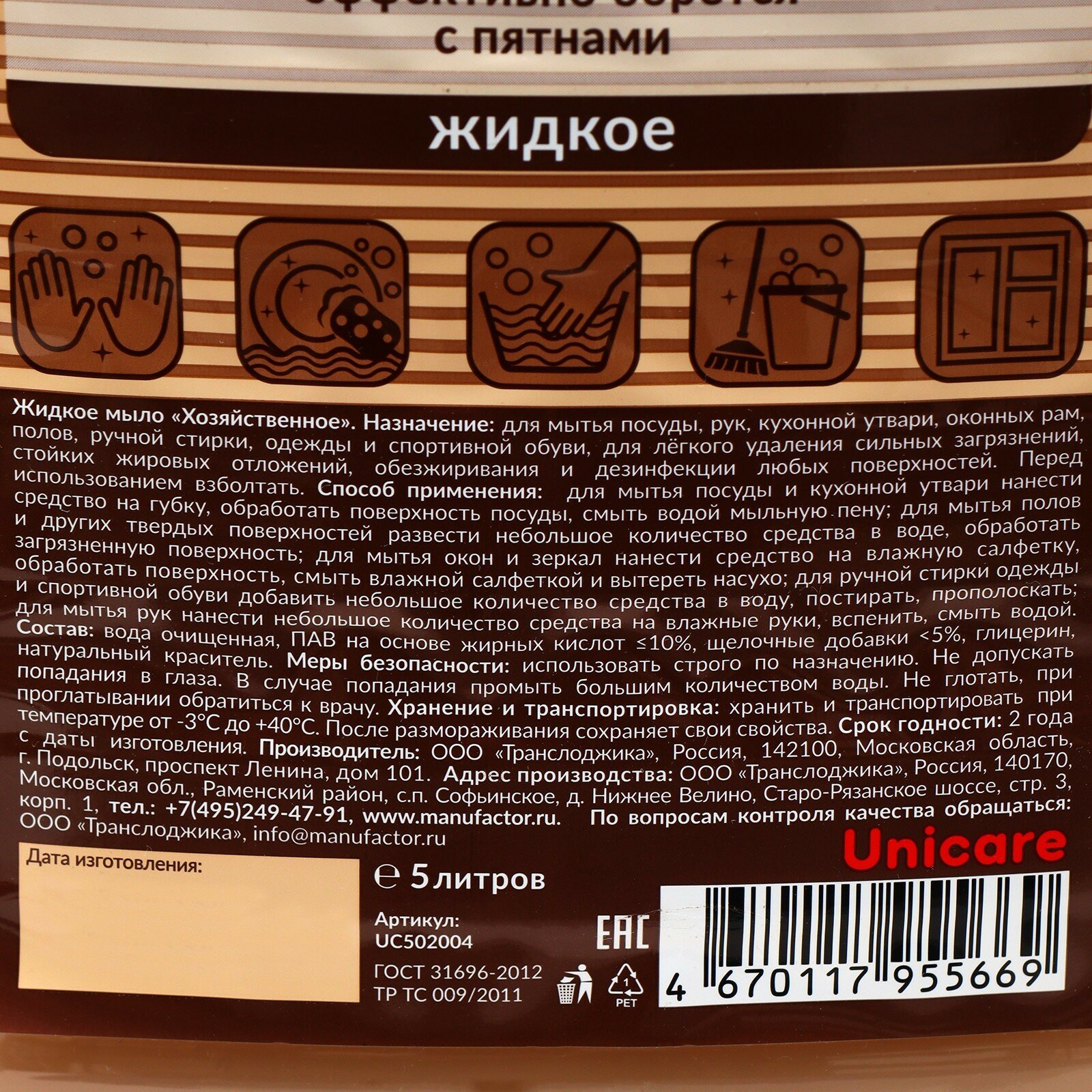 Мыло жидкое UNICARE 5 л Хозяйственное, ПЭТ (UC502004) интересное: