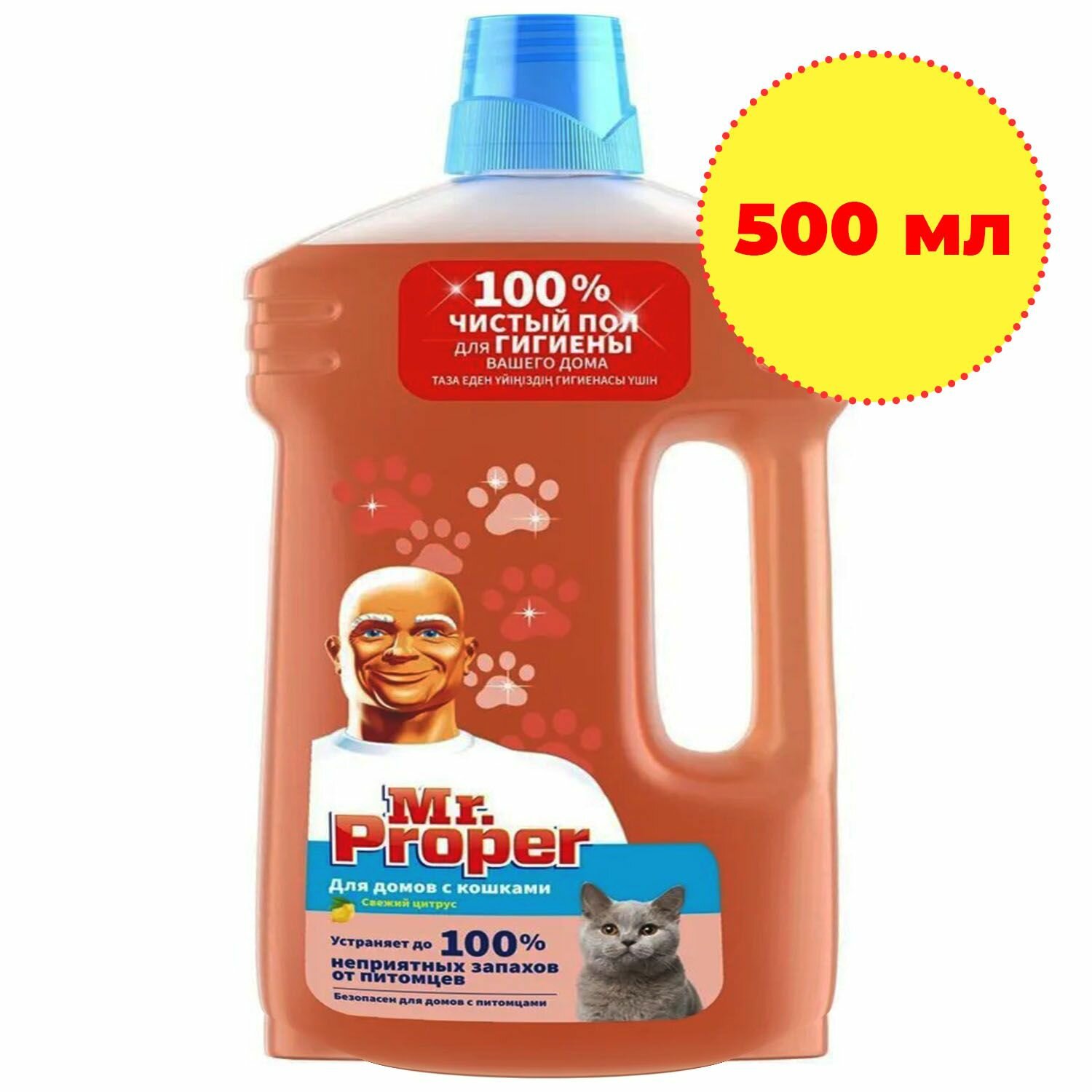 Купить Жидкость для пола Mr. Proper, для дома с кошками, свежий цитрус, 500 мл