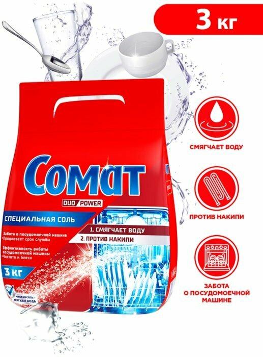 Cредство для посудомоечной машины Специальная соль Сомат, дополнительное средство для посудомойки, 3 кг интересное: