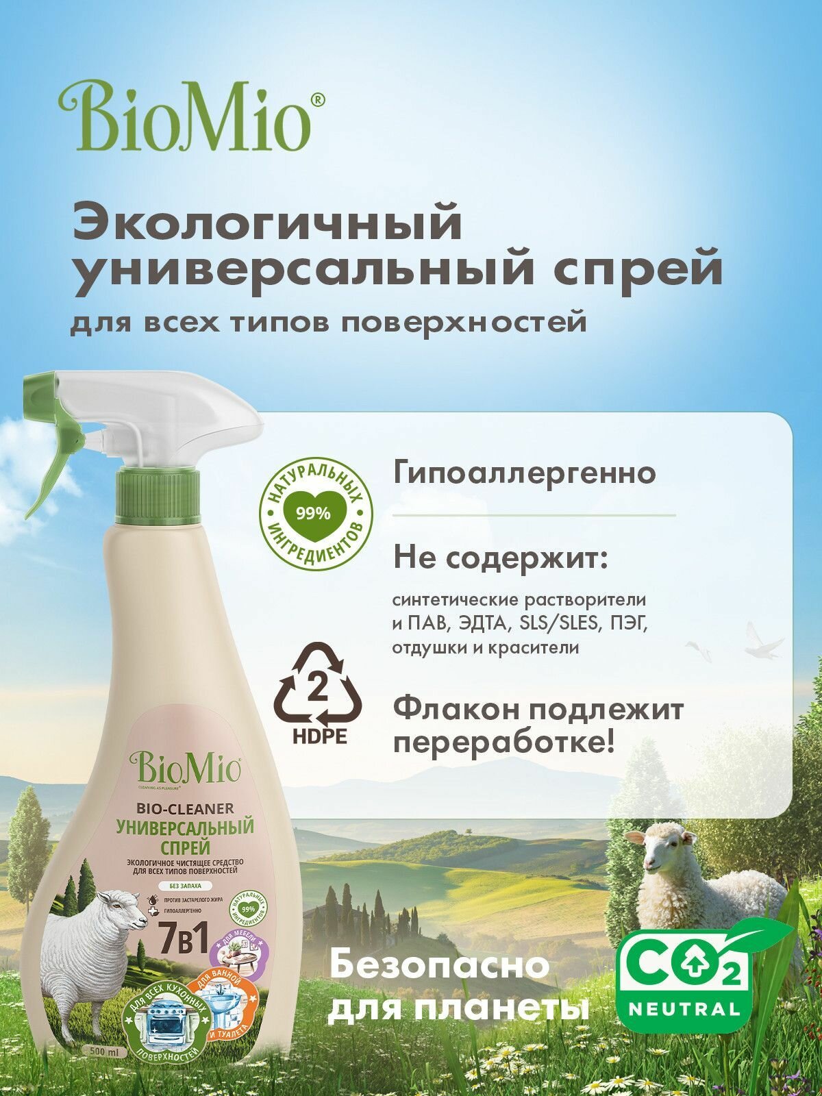 Универсальное чистящее средство BioMio BIO-CLEANER 7-в-1, для всех типов поверхностей, экологичное, 500 мл интересное: