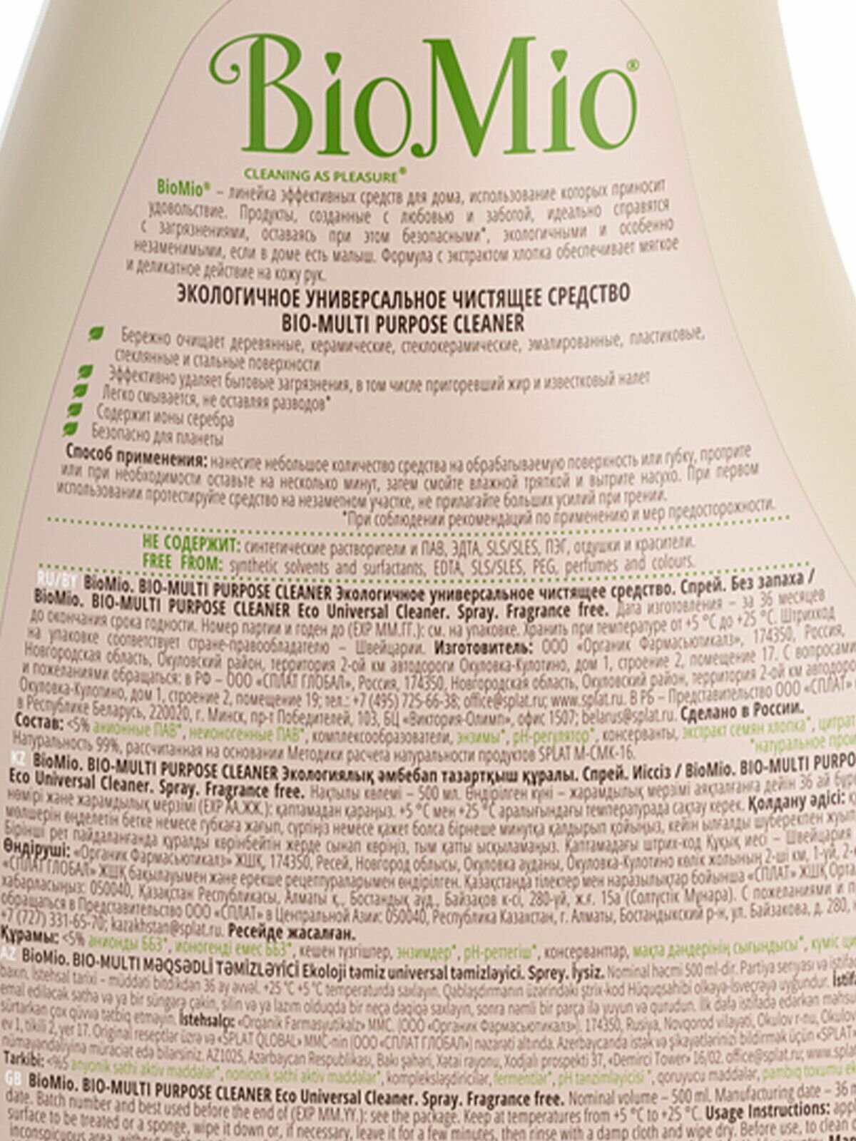 Эко чистящее средство для уборки всех поверхностей BioMio универсальный спрей, без запаха, 500ml