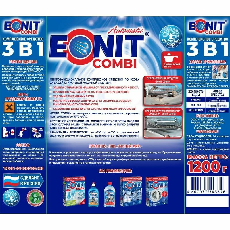 Купить Эонит COMBI, Средство для удаления пятен, защиты от накипи и усиления эффекта стирки в стиральных машинах, 1200 гр