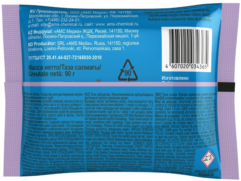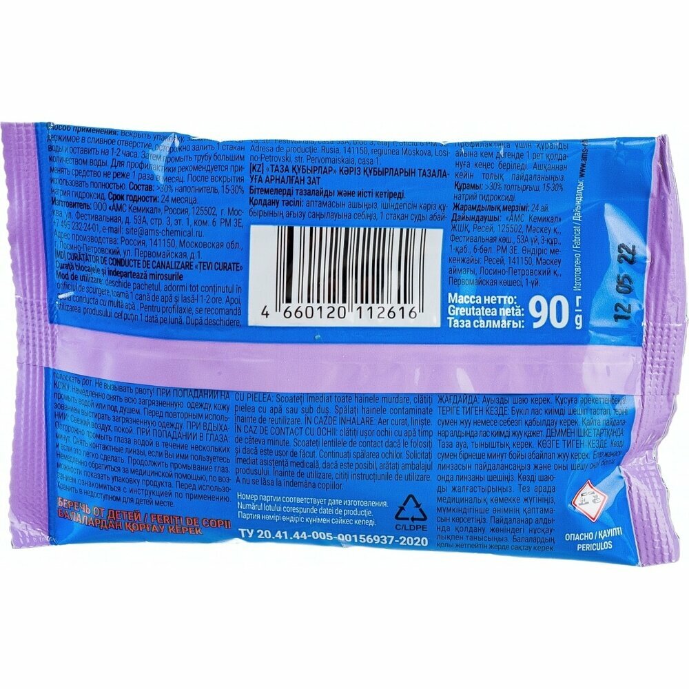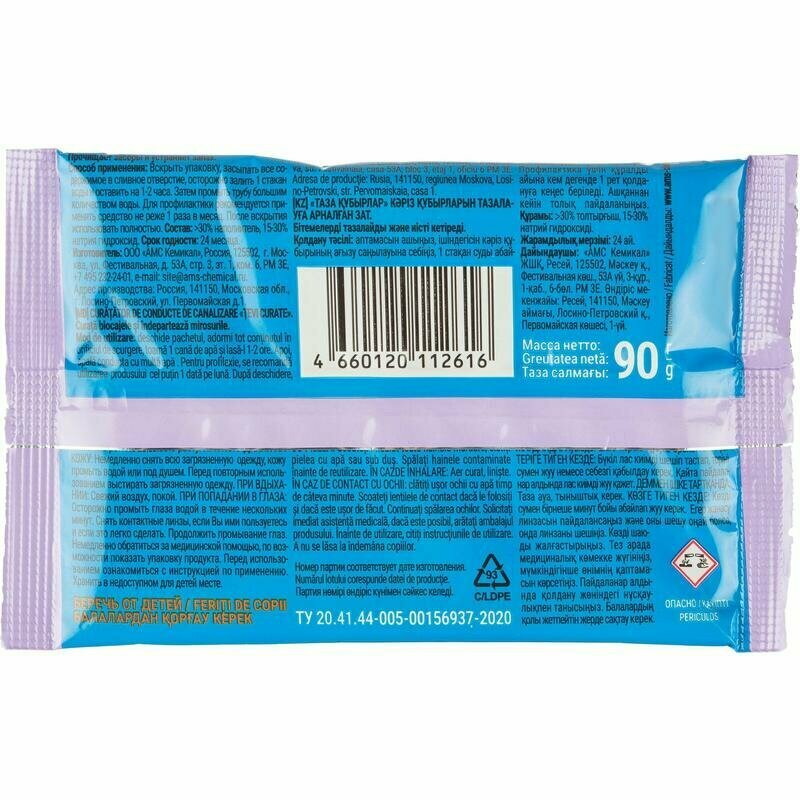 | Подробная комплектация | Средство для прочистки труб ЧИСТЫЕ ТРУБЫ 90гр |