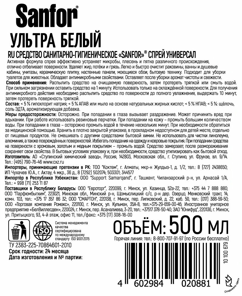 Универсальный спрей Sanfor "Ультра белый", 500 мл