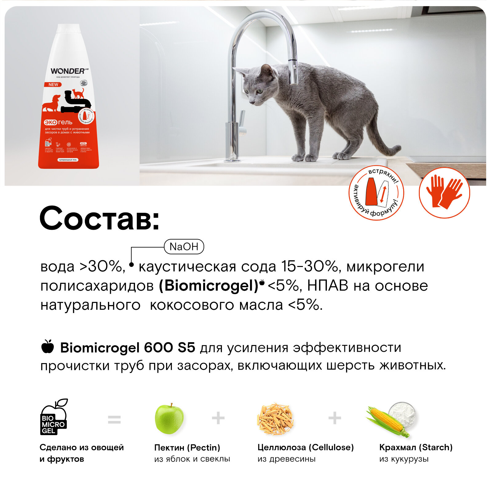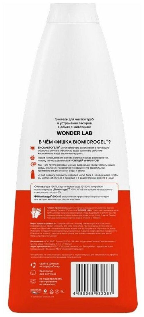 СохранитьЭко средство для прочистки труб и устранения засоров в домах с питомцами WONDER LAB от шерсти животных в трубах, 1100 мл интересное: