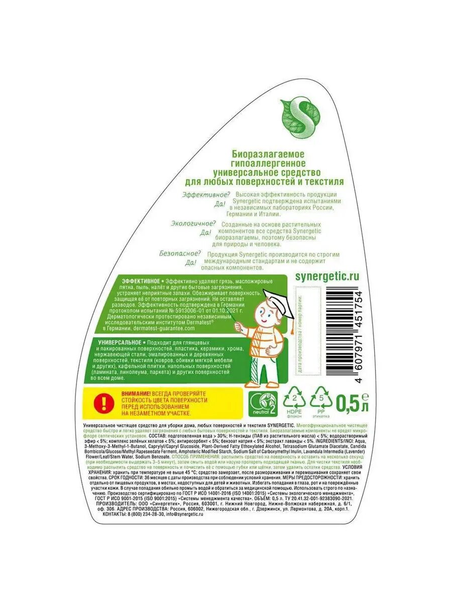 Synergetic Универсальное чистящее средство для уборки дома, любых поверхностей и текстиля 0.5 л