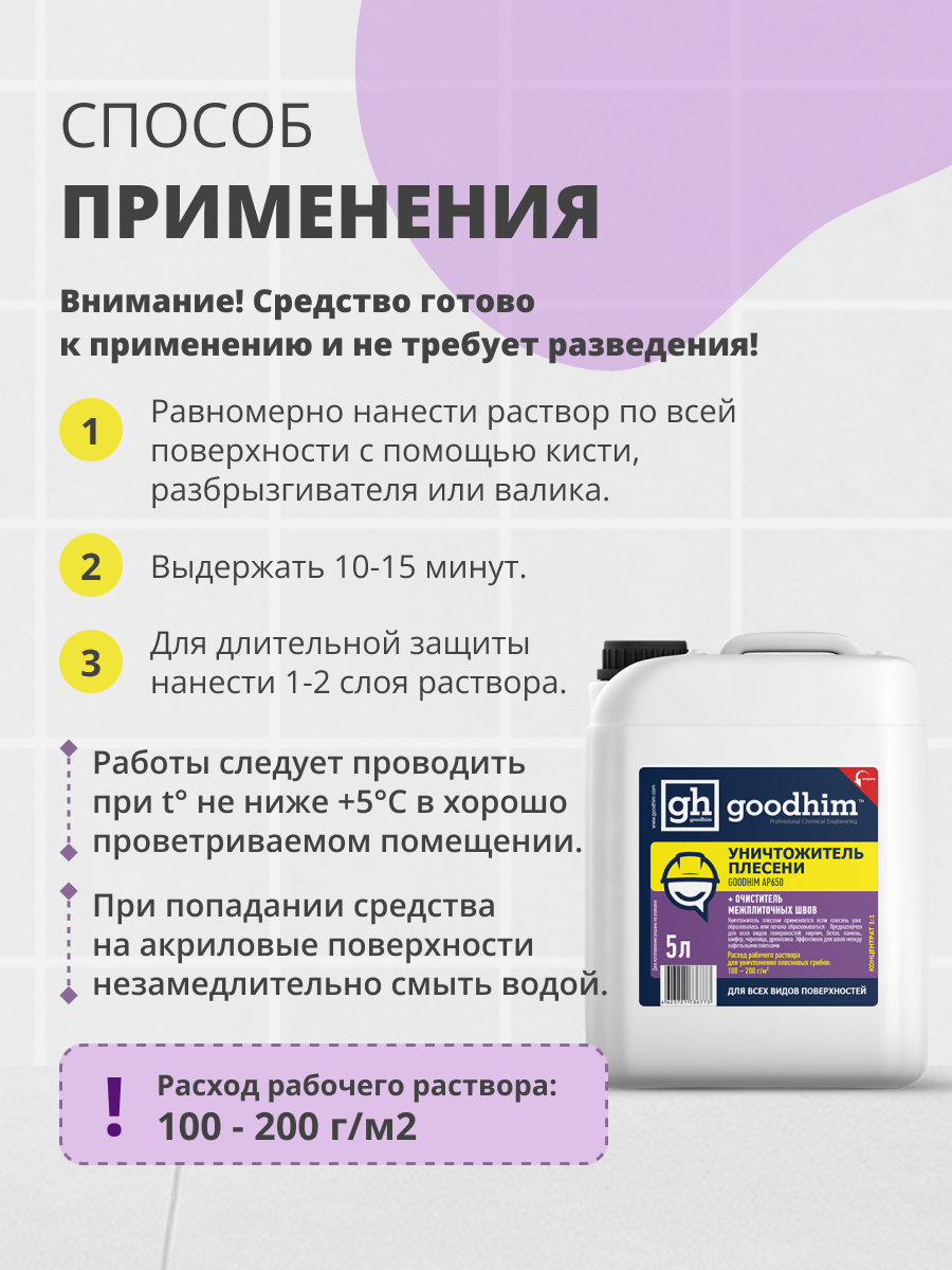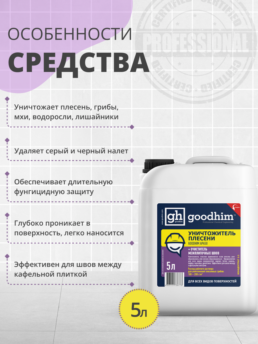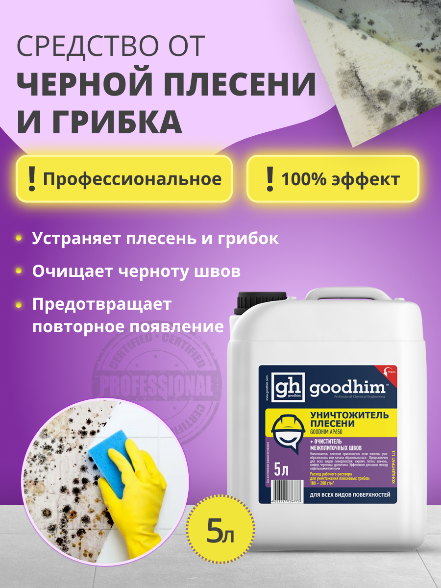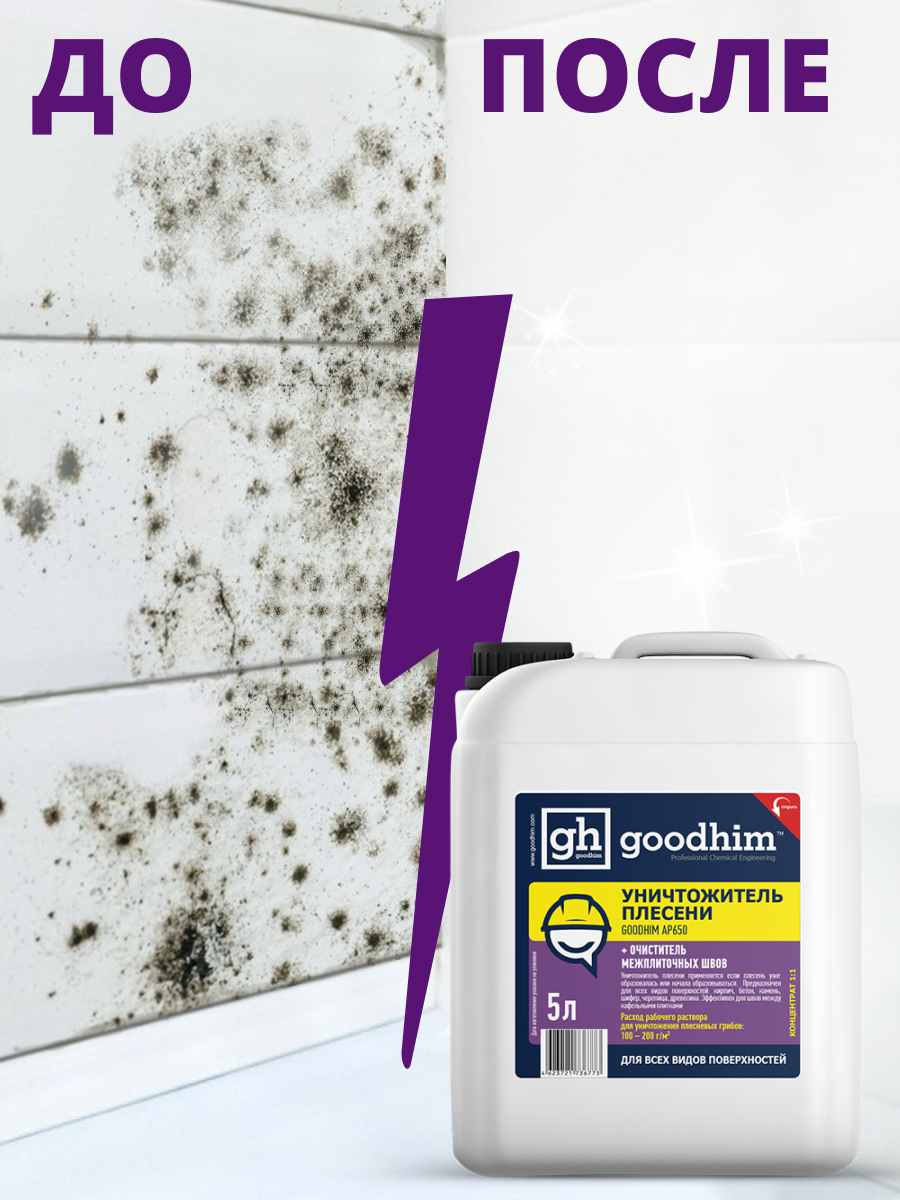 Средство от плесени 8в1 + очиститель межплиточных швов GOODHIM AP 650 (концентрат 1:1), 5 л 78521 интересное: