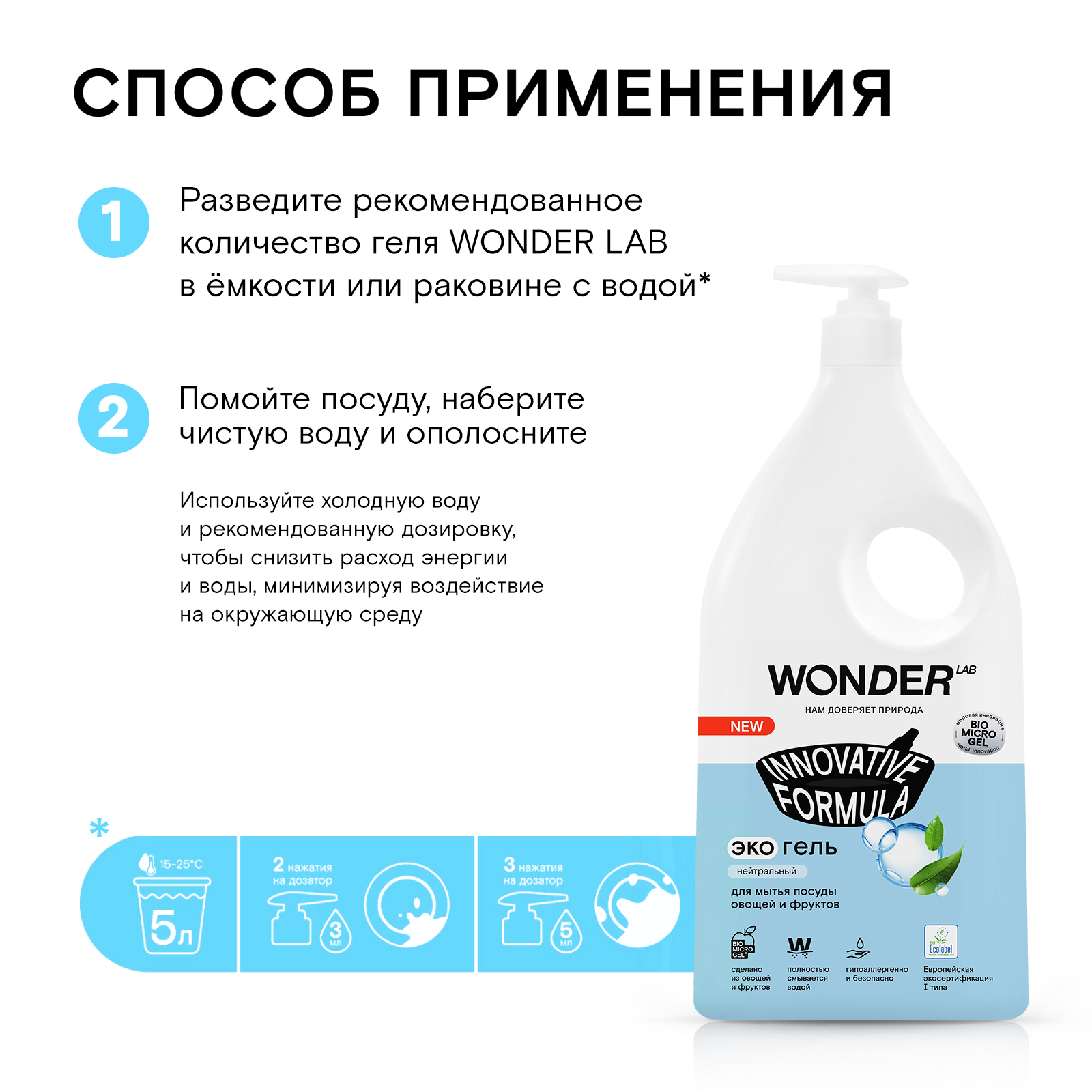 СохранитьЭко гель для мытья посуды овощей и фруктов без запаха WONDER LAB, 1000 мл интересное: