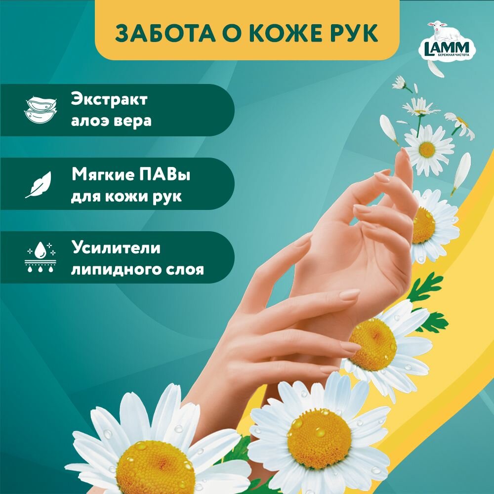 Купить LAMM Ламм Нежные руки гель для мытья посуды "Ромашка + Витамин Е", 450 мл