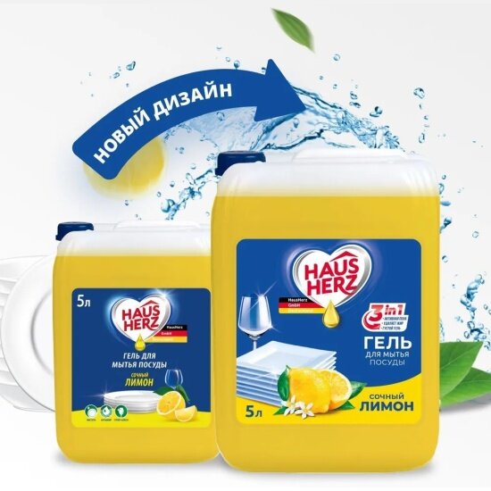 Средство для мытья посуды Haus Herz Сочный лимон, 5 л интересное: