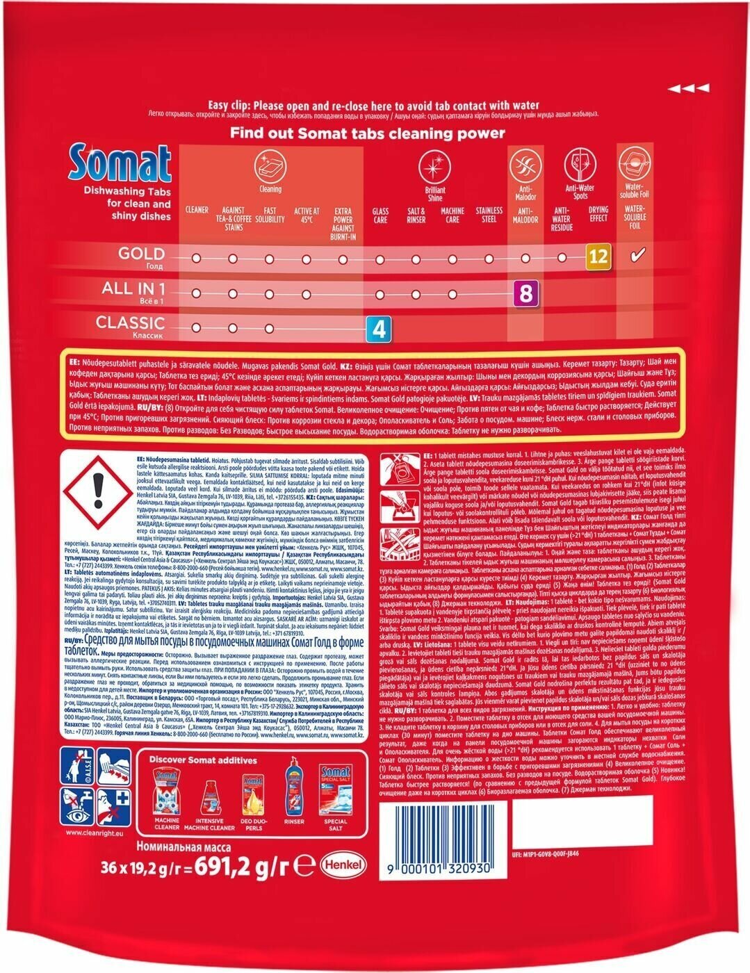 Таблетки для посудомоечной машины Сомат Gold, 36 шт., 0.69 кг, дой-пак