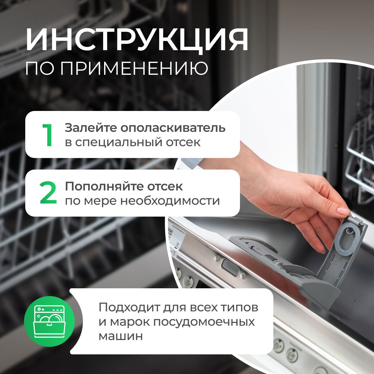 | Способ применения | залейте ополаскиватель в специальный отсек, а дальше машинка все сделает сама — дозировка происходит автоматически |