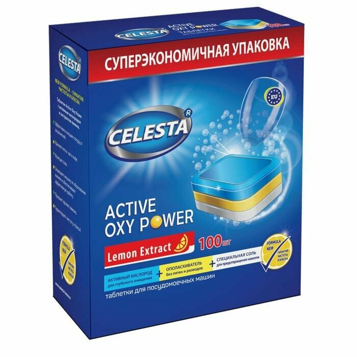 Таблетки для посудомоечных машин Celesta Active Oxy Power, антибактериальный эффект, 100 шт