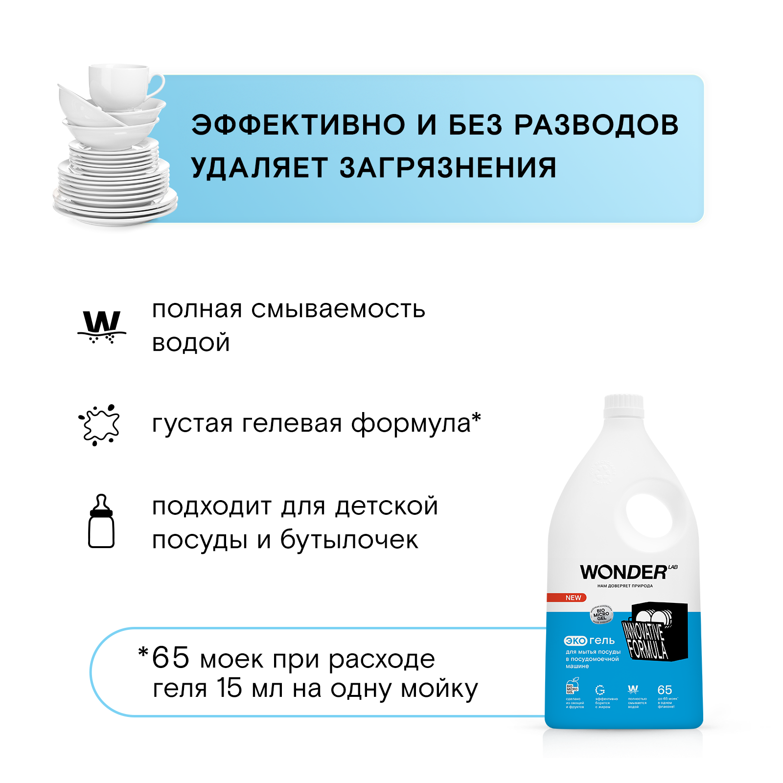Эко гель для посудомоечной машины ПММ WONDER LAB, средство для мытья посуды в посудомоечной машине без запаха, 1 л интересное: