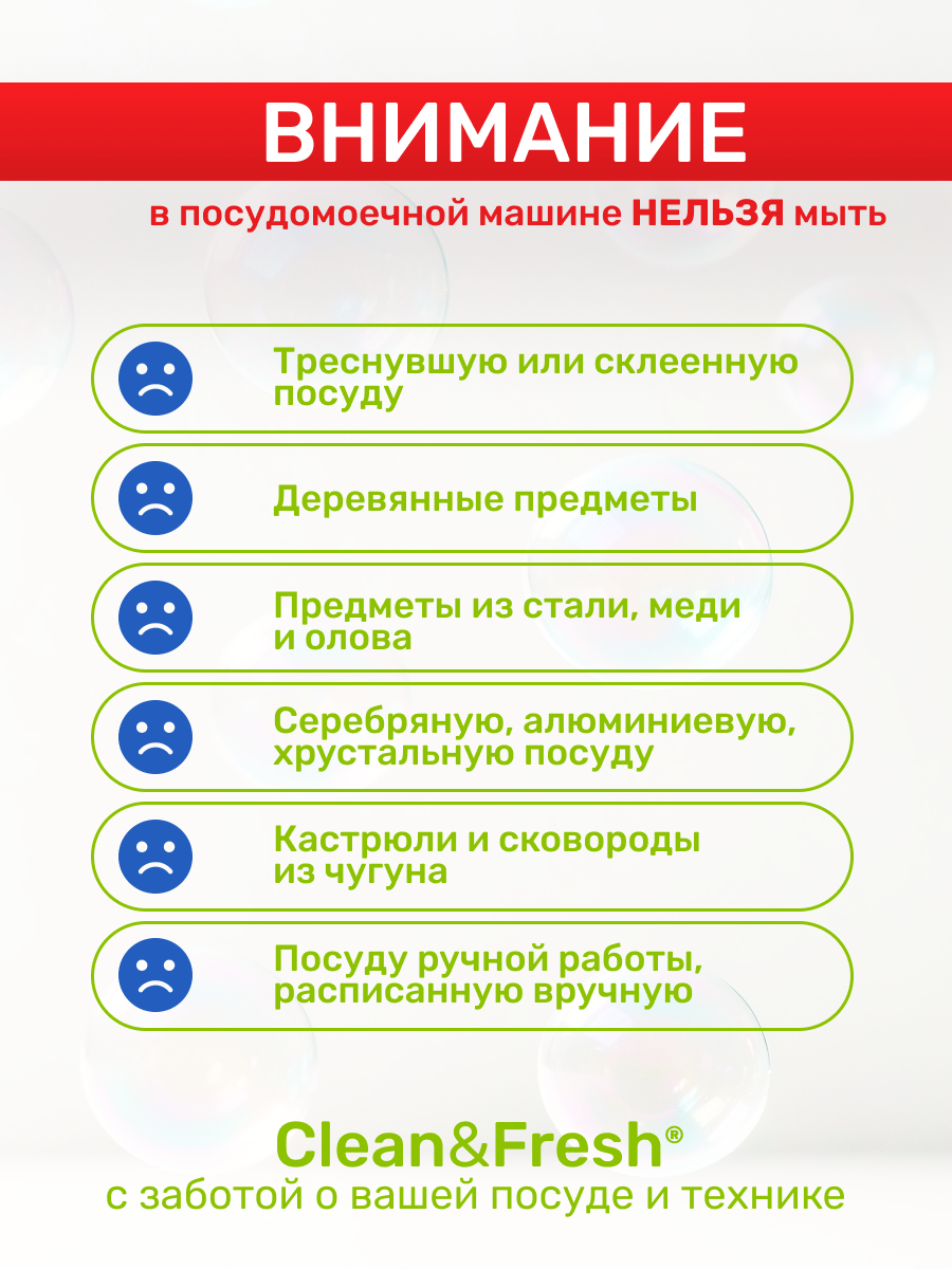 Таблетки для посудомоечной машины "Clean&Fresh" Всё в 1 / 60 шт / капсулы для посудомоечной машины, не растворимая оболочка
