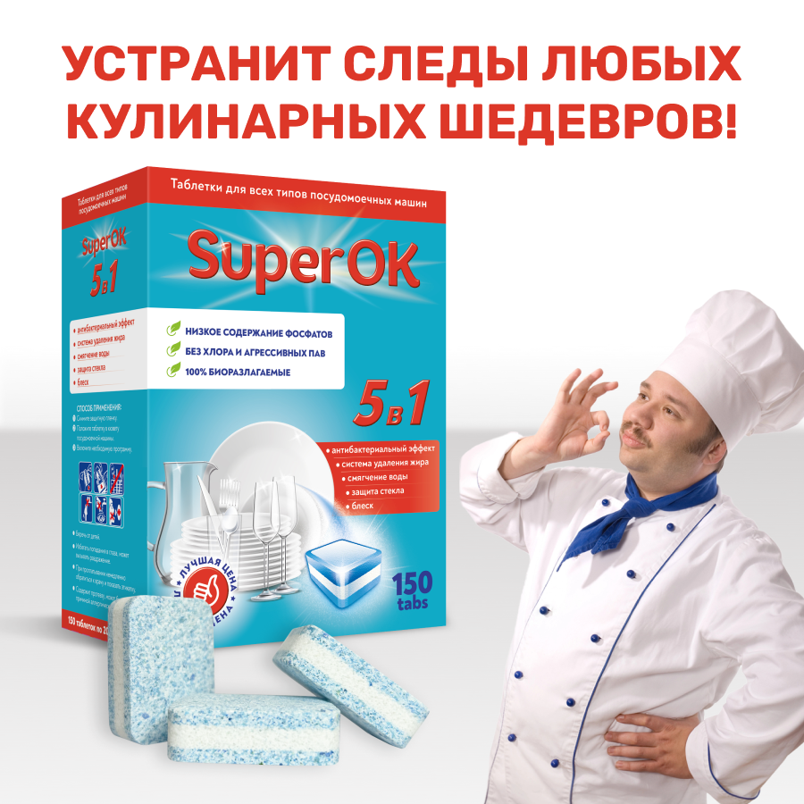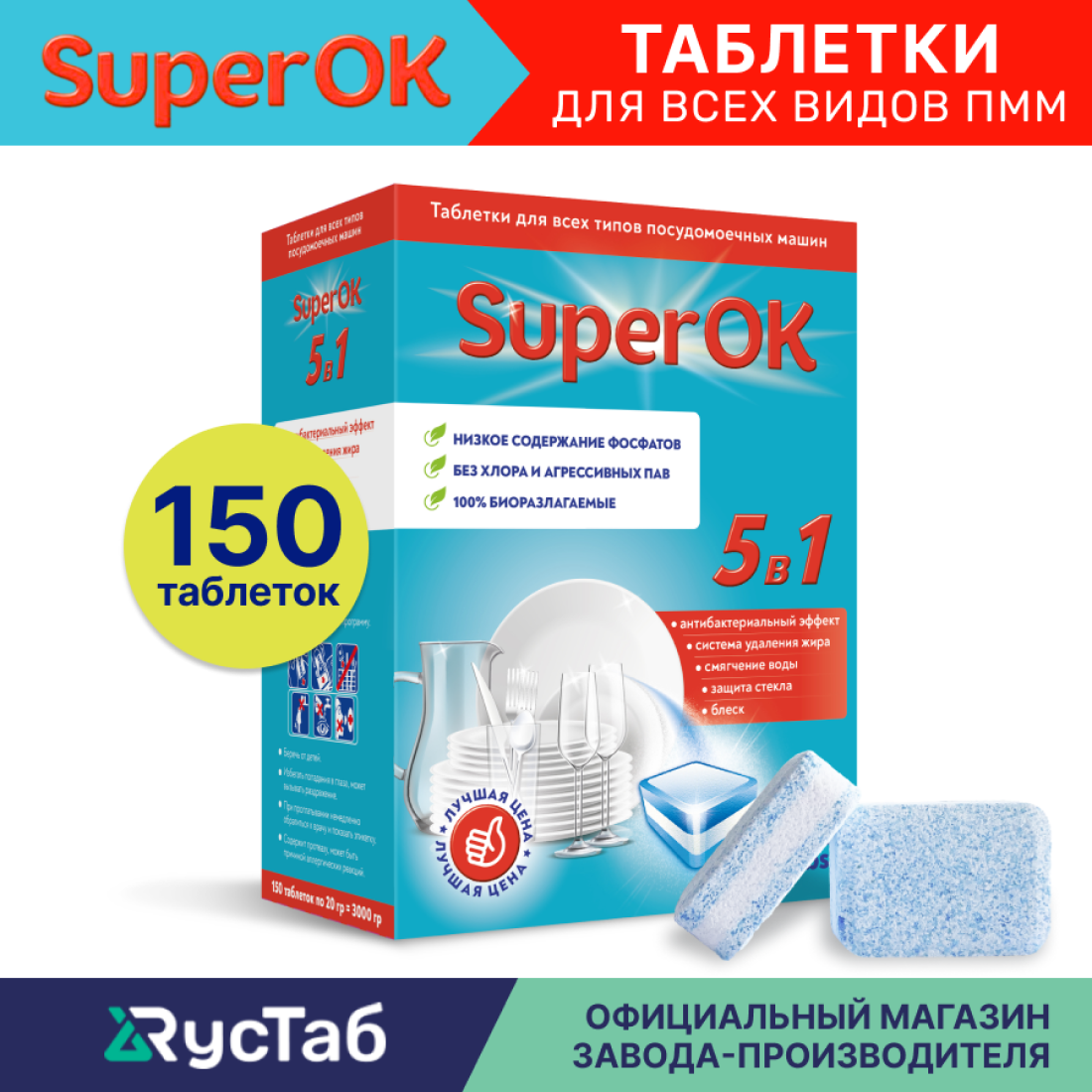 Таблетки для посудомоечных машин "SuperOK", 150 шт