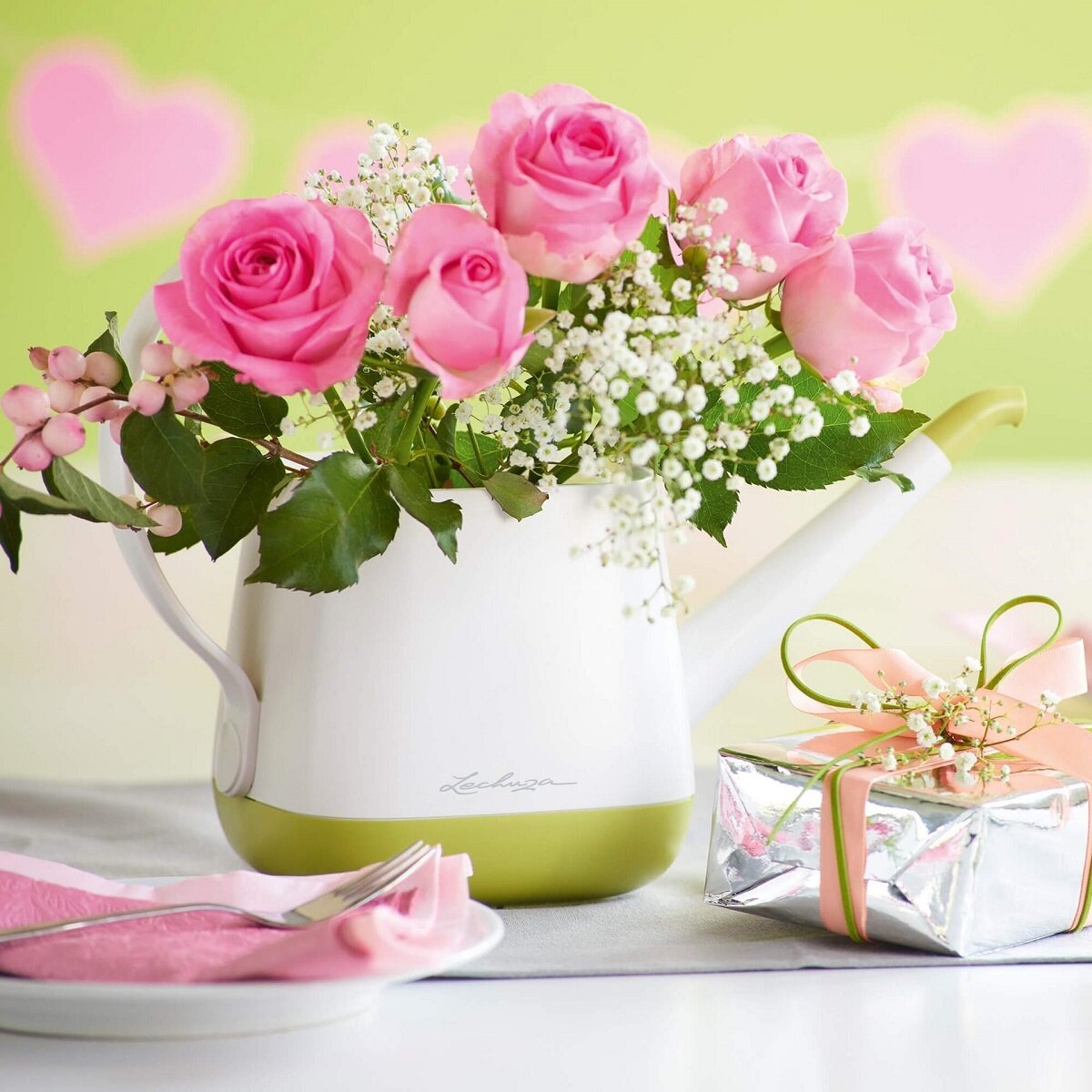 Лейка для комнатных растений Lechuza YULA белая-зеленая матовая 1,7 л
