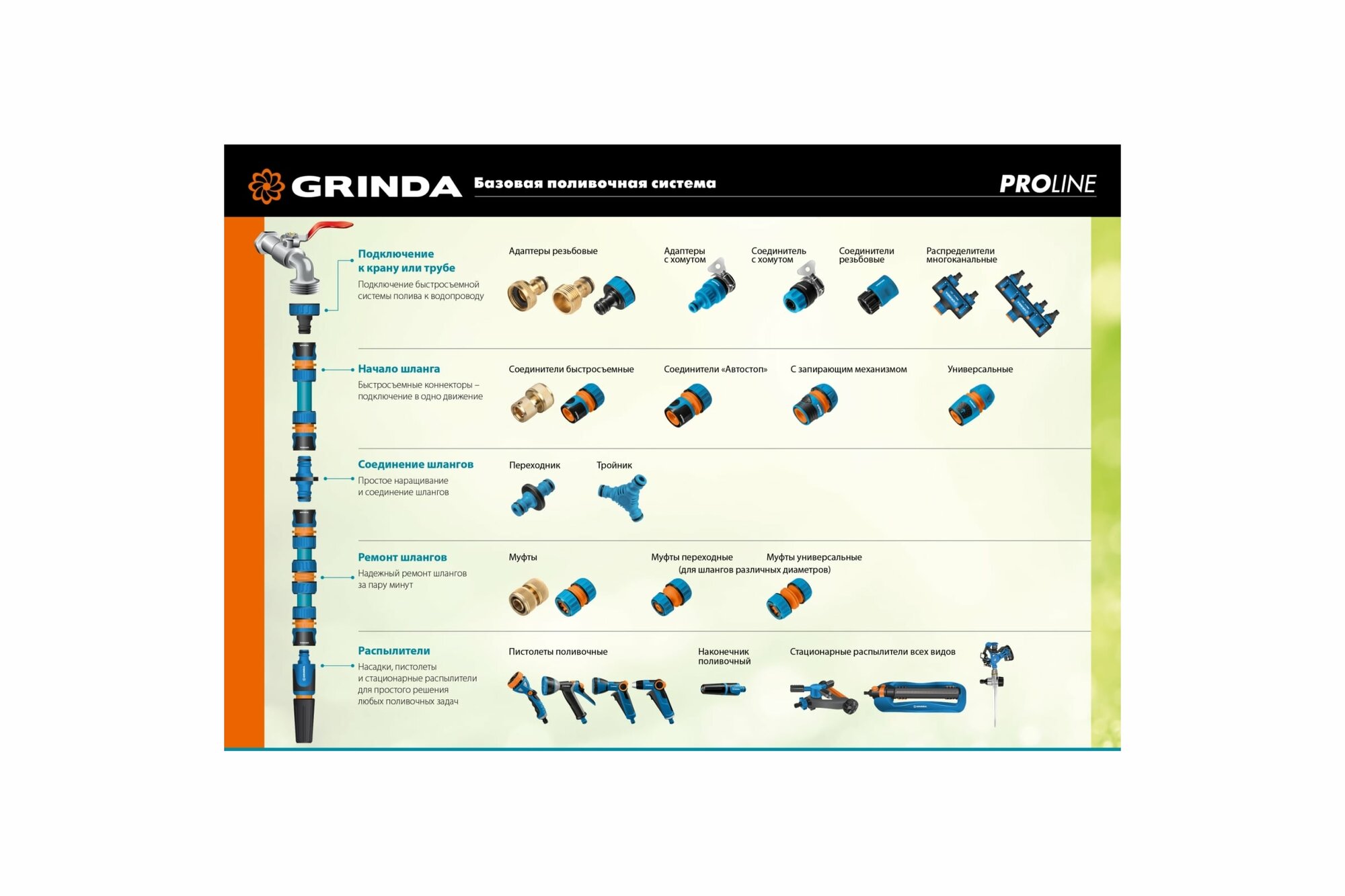 Распылитель веерный Grinda PROLine 18 форсунок, полив 399 м2