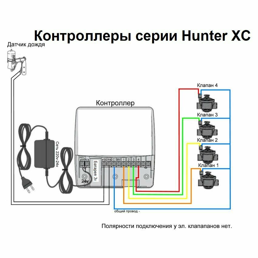 Контроллер систем полива Hunter XC-601i-E на 6 зон, внутренний интересное: