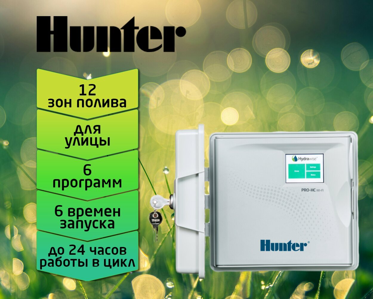 Контроллер систем полива Hunter с Wi-Fi управлением Pro-HC PHC-1201-E на 12 зон, наружный интересное: