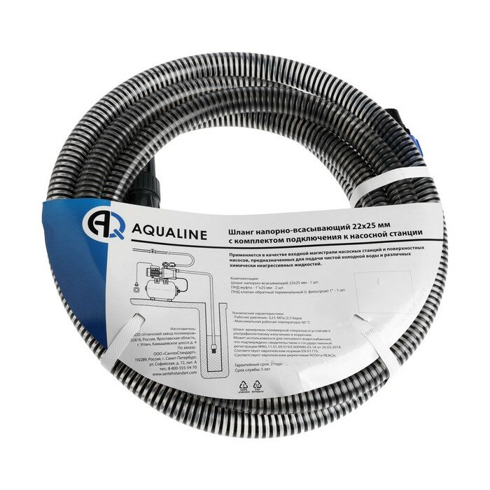 Шланг напорно-всасывающий AQUALINK, d=22х25 мм, 1", для насосной станции, 5 м 10368079