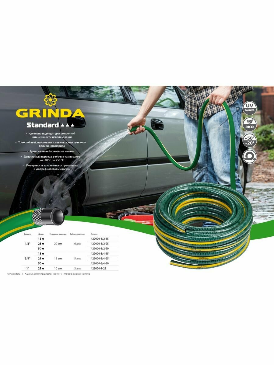 Grinda Шланг "STANDARD" поливочный, 3-х слойный, 15атм, 3/4",50 м 429000-3/4-50 интересное:
