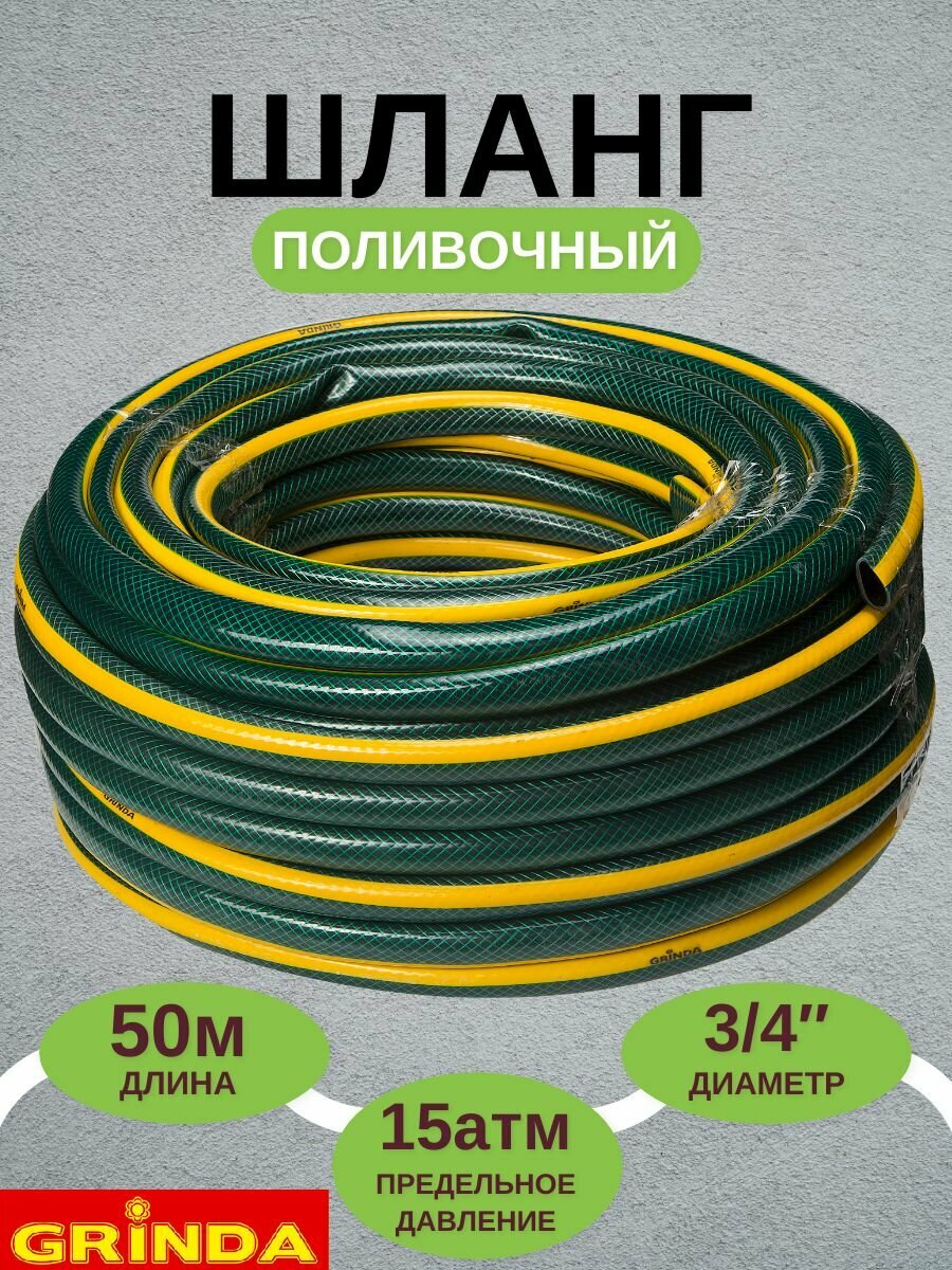 Шланг садовый Grinda "STANDARD" 3-х слойный, 15атм, 3/4",50 м