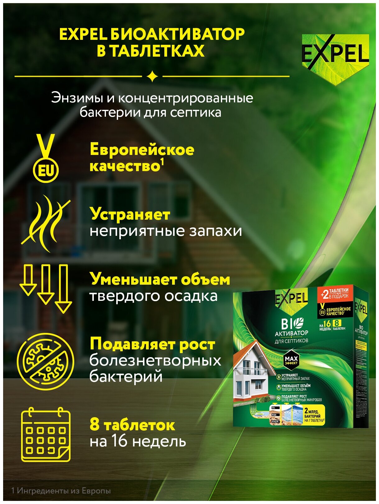 Бактерии для септиков и выгребных ям, биоактиватор, средство для дачного туалета Expel, 10 таблеток