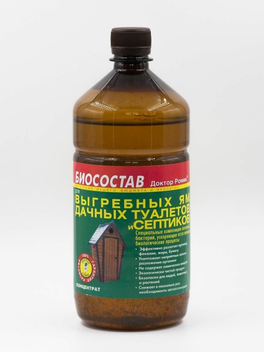 Доктор Ромик биосостав для выгребных ям, дачных туалетов и септиков, 1 л/, 1 кг, 1 шт., 1 уп.