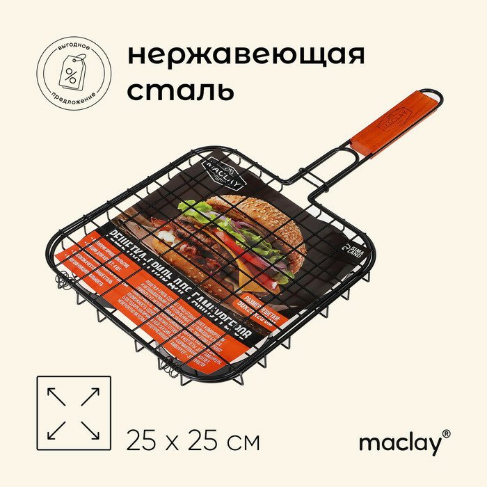 Решётка гриль для бургеров maclay, 25x25 см, нержавеющая сталь, для мангала интересное: