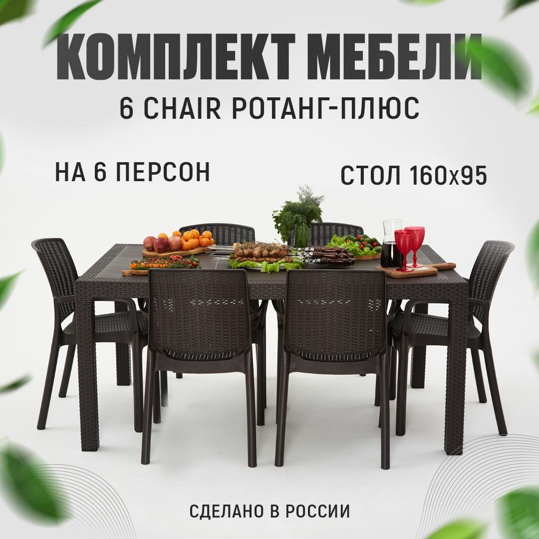 Садовая мебель. Набор HomlyGreen, стол большой прямоугольный на 6 персон 160х95х75, 6 стульев, цвет венге. интересное: