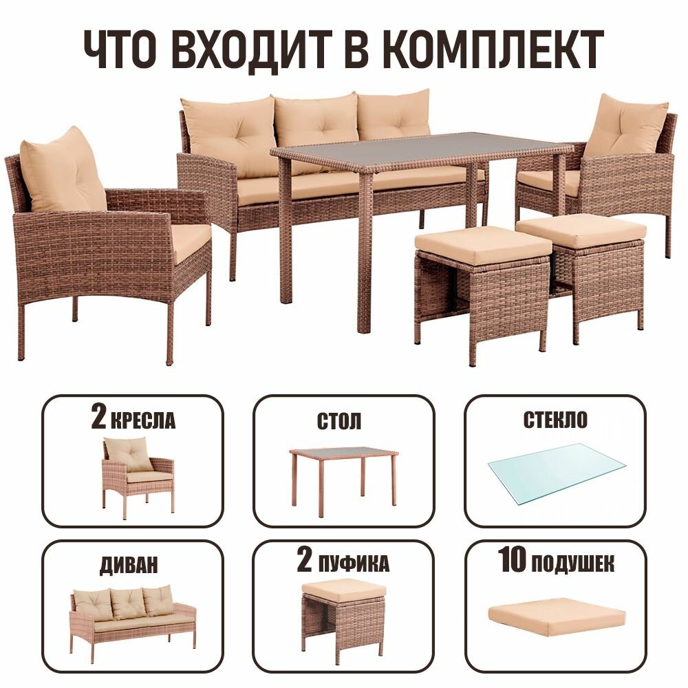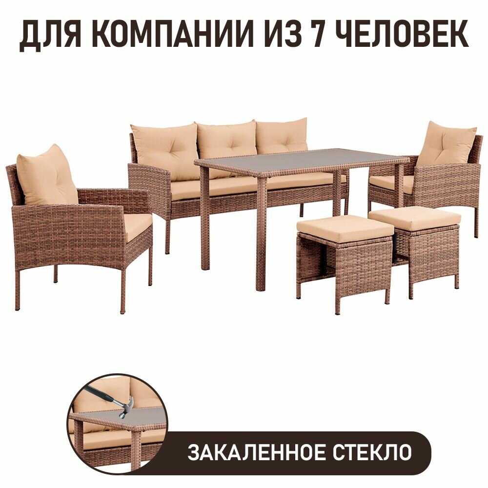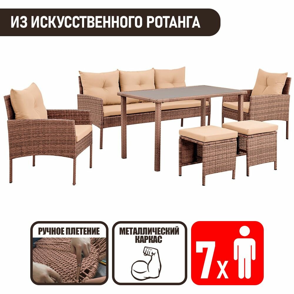 Купить Комплект садовой мебели для дачи и сада из искусственного ротанга Фьорд-7, капучино