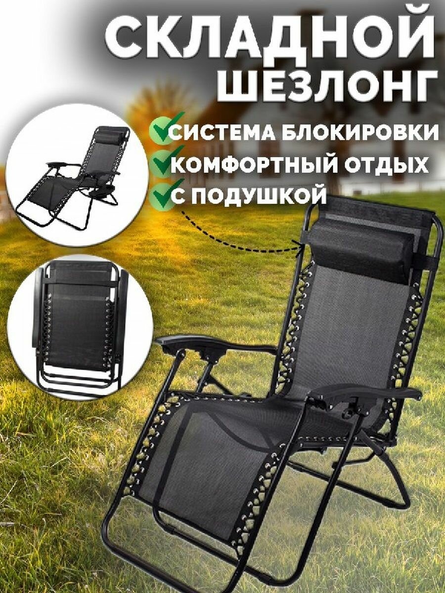 Кресло-шезлонг для дачи и рыбалки Homium Garden, черный (складное), цвет черный