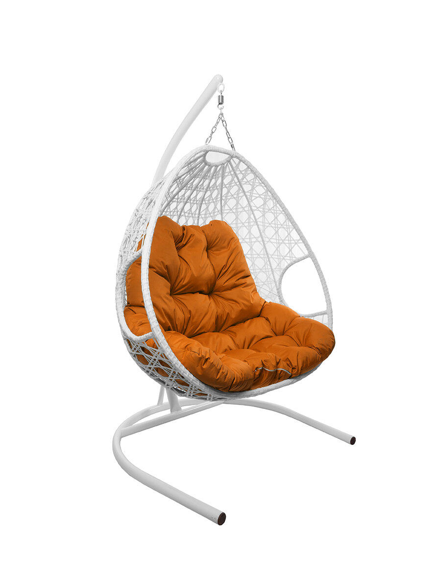 Купить Подвесное кресло для двоих с ротангом белое, оранжевая