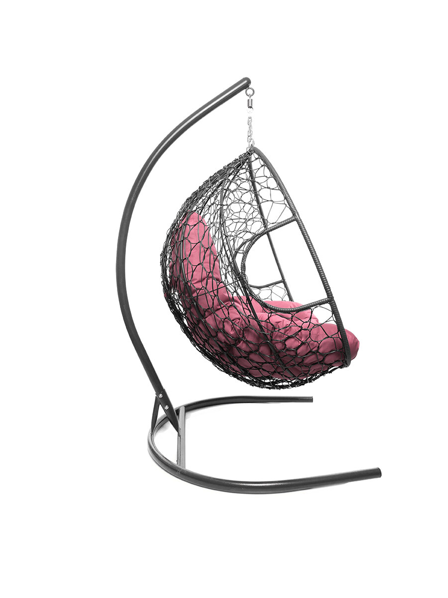 Подвесное кресло из ротанга "Для двоих" серое с бордовой подушкой M-GROUP