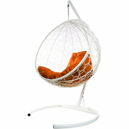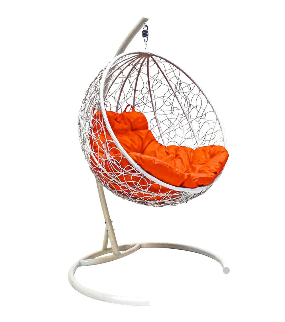 Подвесное кресло Круг ротанг белое, оранжевая подушка интересное: