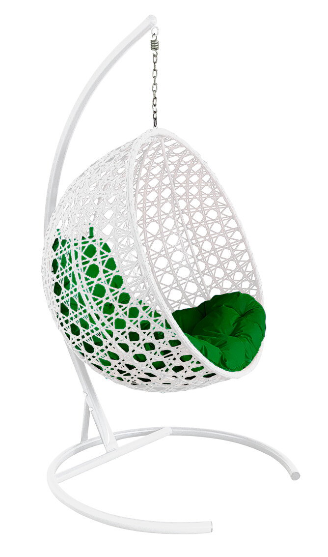 Подвесное кресло кокон"круглый"люкс ротанг цвет: белый ; подушка: зеленый
