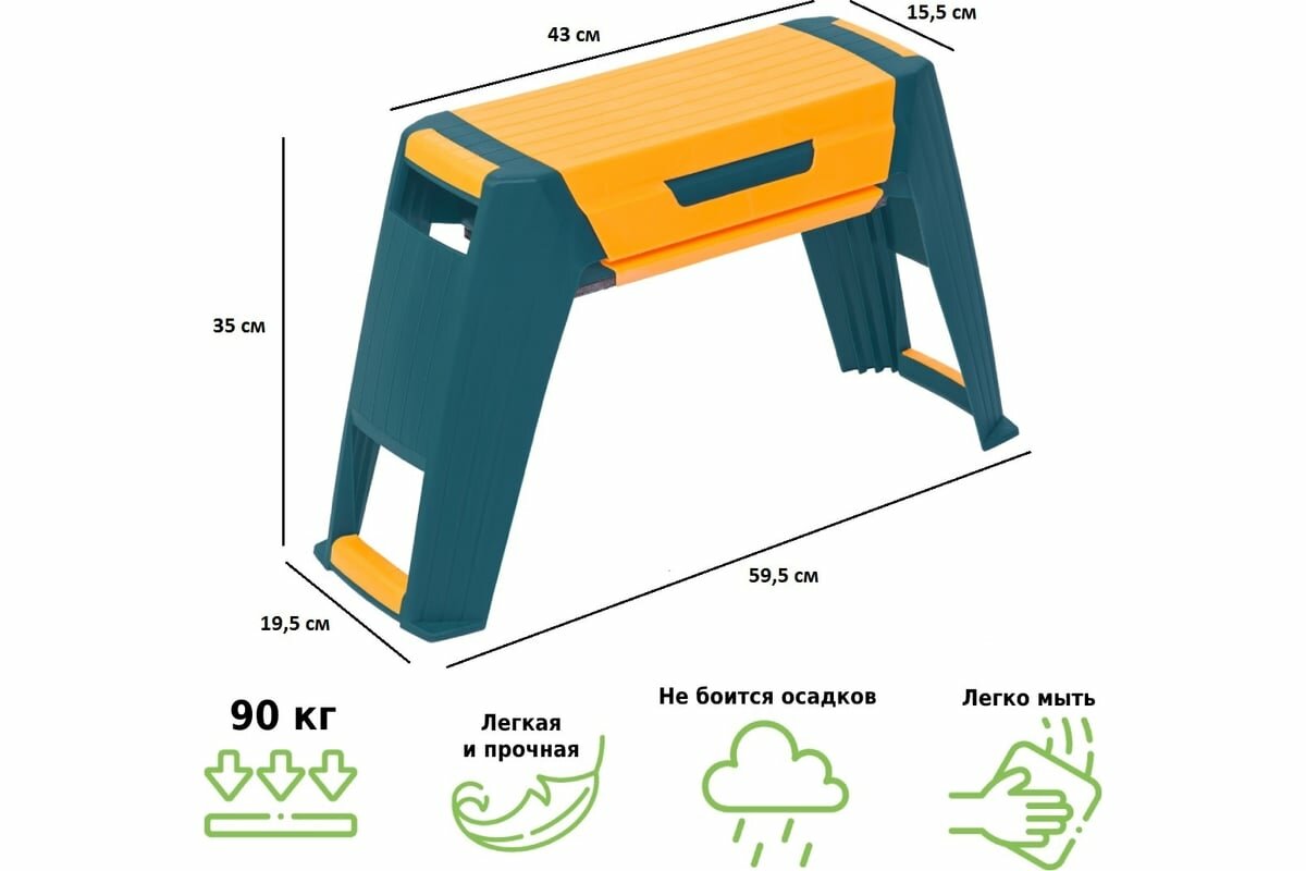 Скамейка-перевертыш садовая Helex 3 в 1 пластиковая, органайзер, подколенник