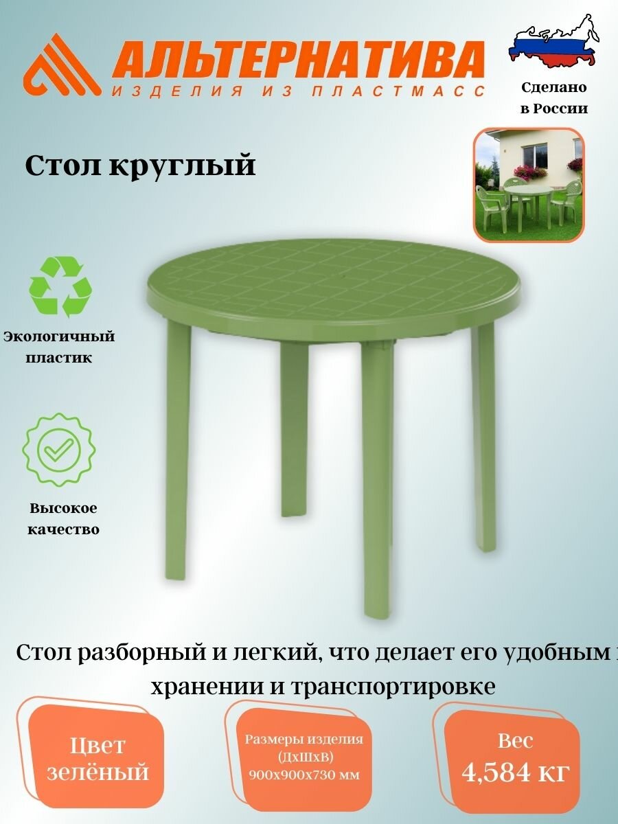 Стол пластиковый "Альтернатива" М2666, круглый 90*90*75 см, зеленый