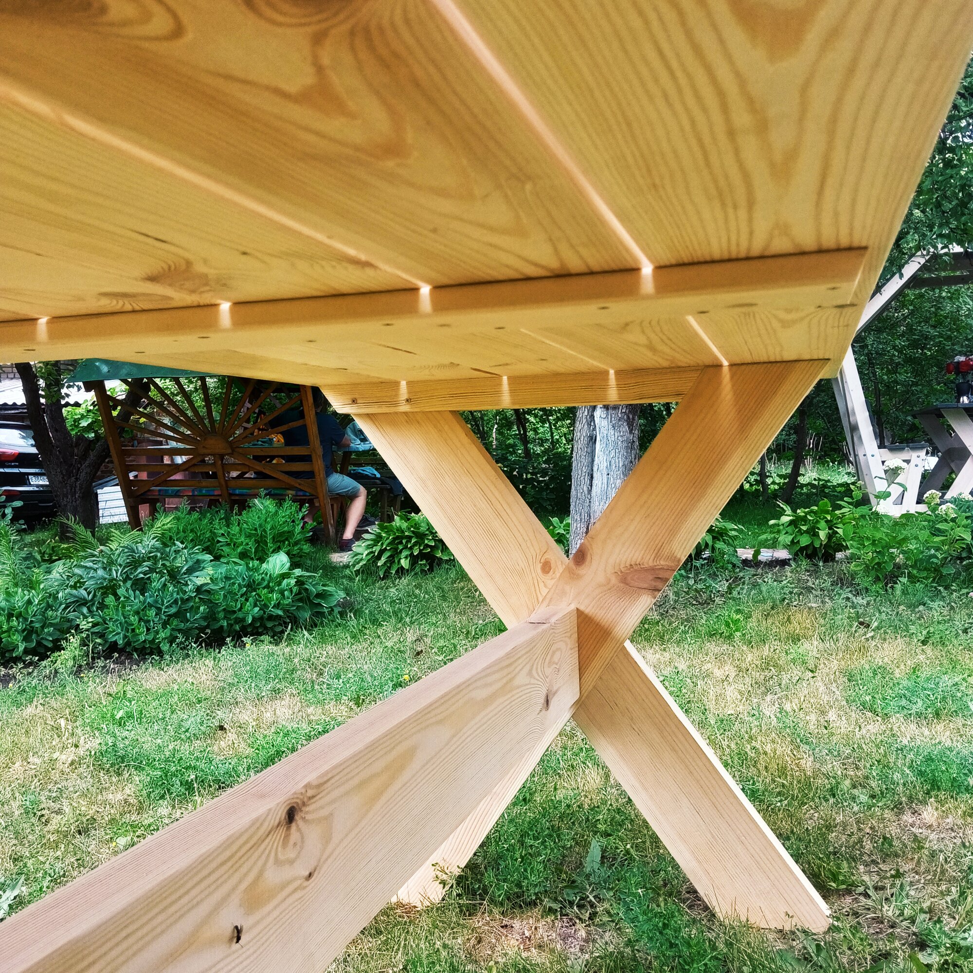 Садовая мебель РУСКЕА "Стол Семейный натуральное дерево", массив сосны, 195х70