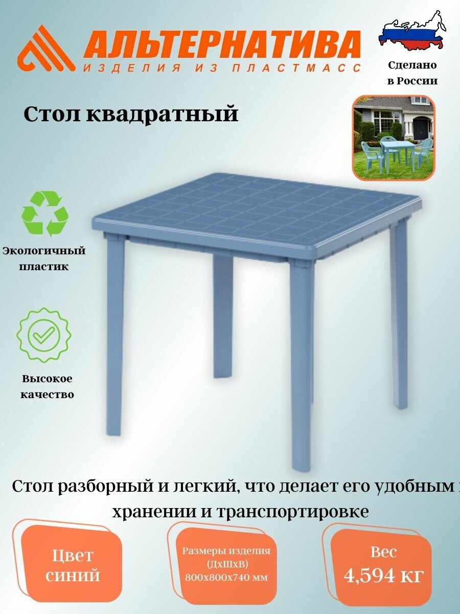 Стол садовый квадратный Альтернатива М2594, (синий), 80х80х74