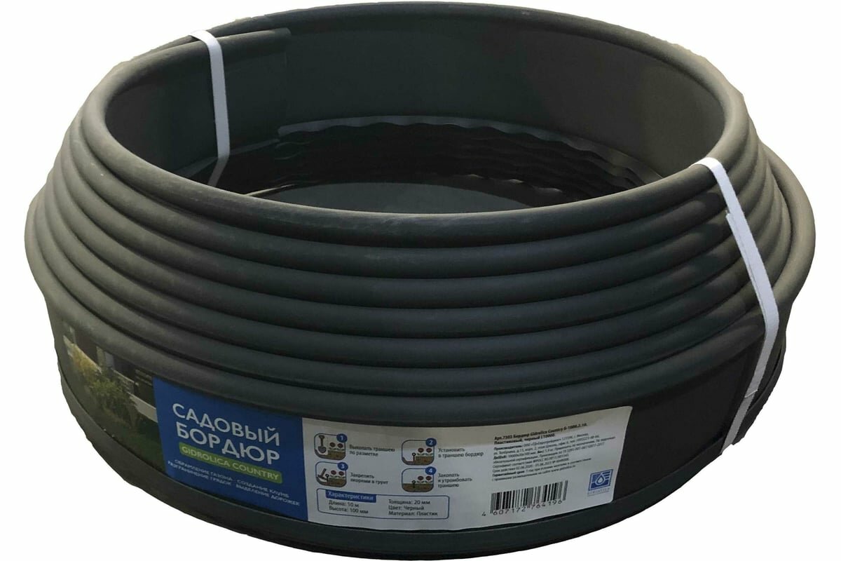 Купить Бордюр садовый Gidrolica Country черный, с отверстиями