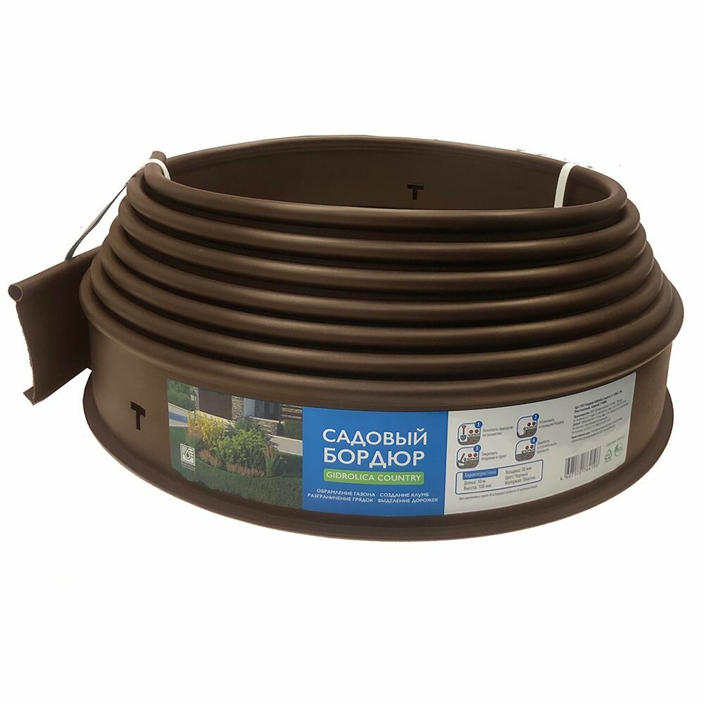 Gidrolica Country бордюр пластиковый коричневый 10000x20x100мм с отверстиями 7302